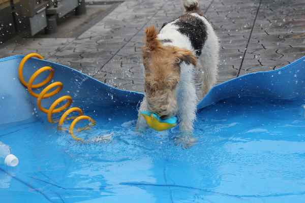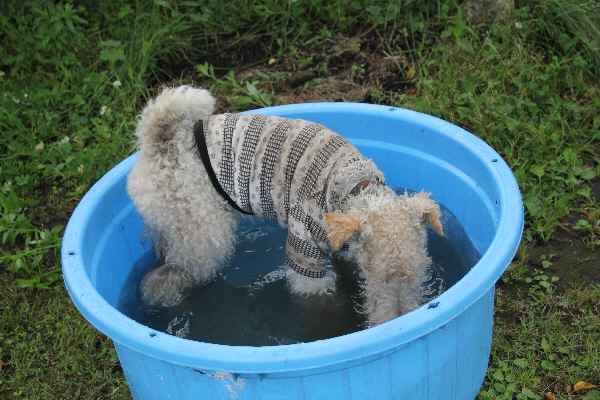 でもシャンプー したかったから どんより空だけど プール遊びを 一瞬して。