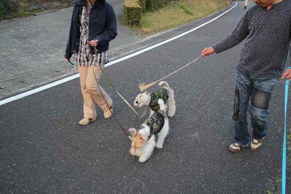 安全ルートを選択した 3わん。 私と一緒に林道を。