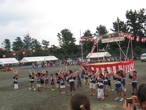 お祭り開始。近所の保育園や幼稚園の園児達の出し物。