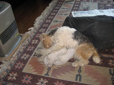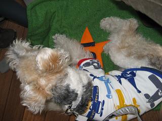 果てしなく続くママ達のおしゃべりに わん達は眠るしかないのでした。
