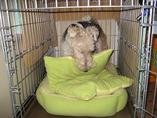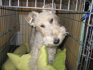 ケージに閉じこめ しばらく無視です。くんくん泣いても無視。