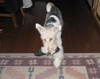 テーブルの上にあったメモ用紙を口に入れ 出させようとしたら 慌てて飲み込むし・・・。