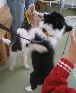ロッツ君(6ヶ月)とジャック君(3ヶ月)は相性よくずっとじゃれてますが・・・。