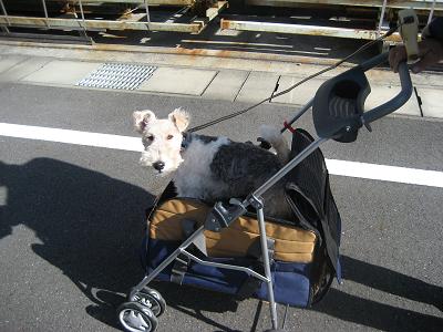 散歩がてらファイブも連れて行こう! と一応カートも用意しました。
