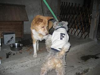 五右衛門はわんこ友達が来たので大喜び。ファイブは・・・。
