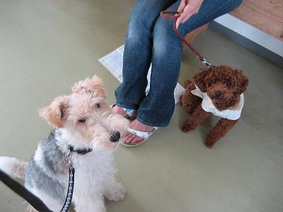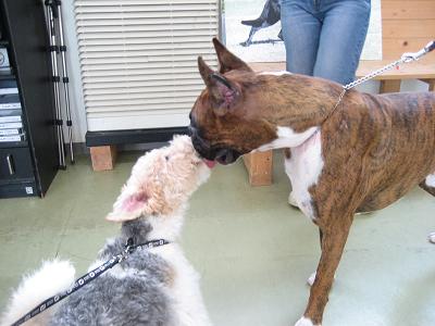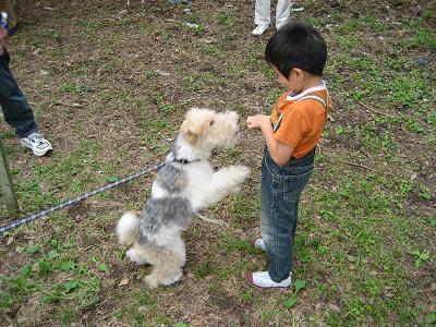 ファイブは大きな ワンコが大好き。みつけると すぐに 口をペロペロ。
