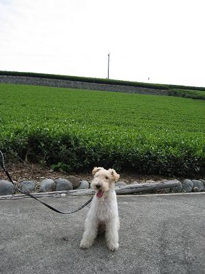 茶畑と大井川を 眺めるファイブ。
