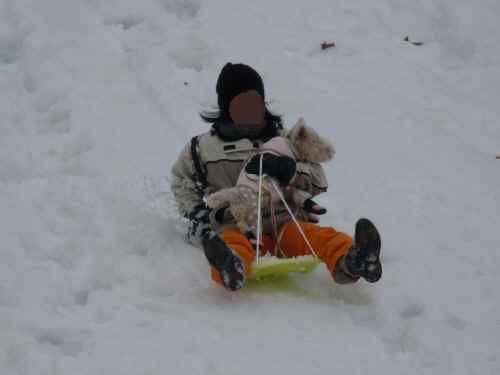 雪遊び初体験のPBH家 おおはしゃぎ。