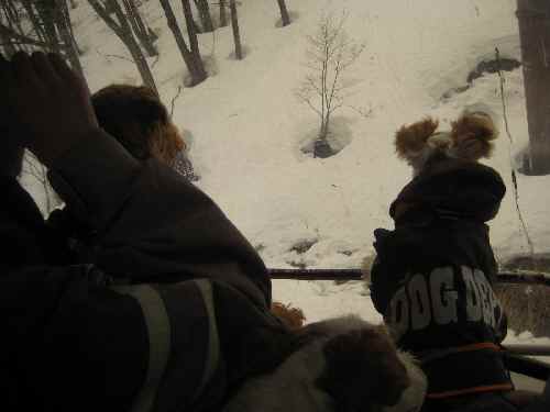 ハーマンとティちゃんは 下で小さく動く人間たちに興奮。