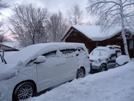 夕方から降り出した雪。