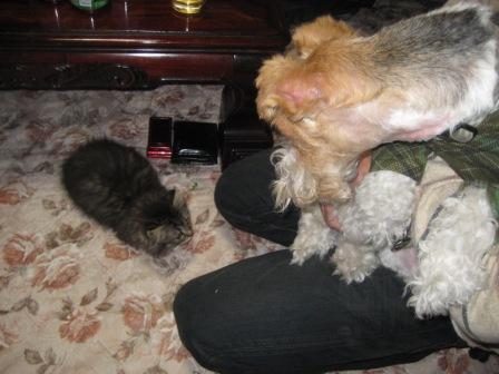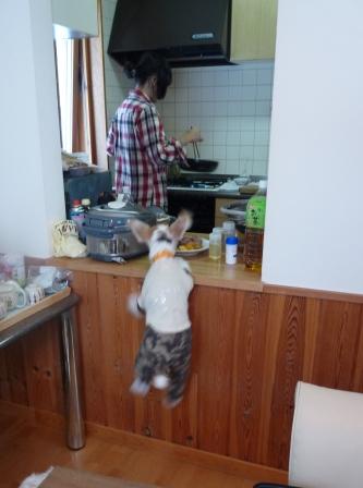 ファイブのしっぽや足が気になって 近寄ってくるのよ・・・。挑発してる。