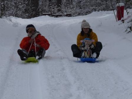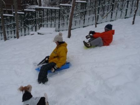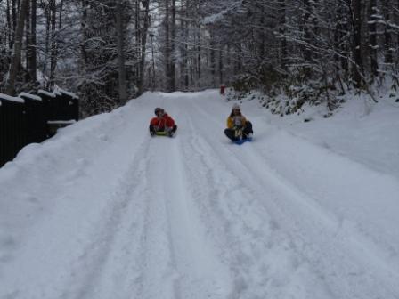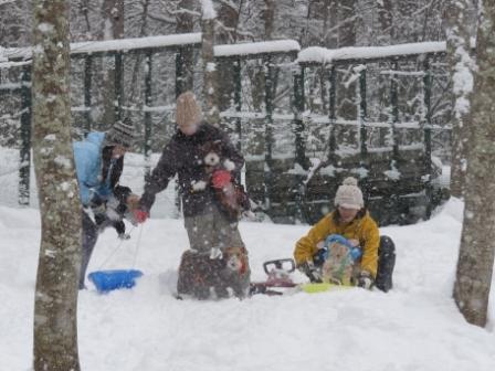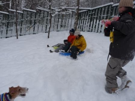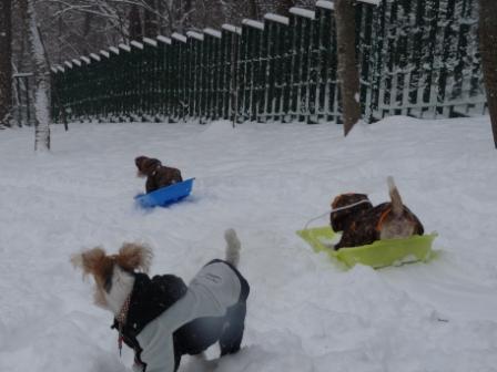 ここのドックラン 山の斜面にあるので そり遊びができました!