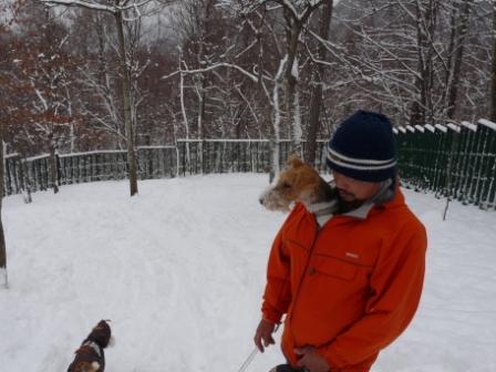ティちゃん 初めての雪遊び。寒くてぶるぶる。