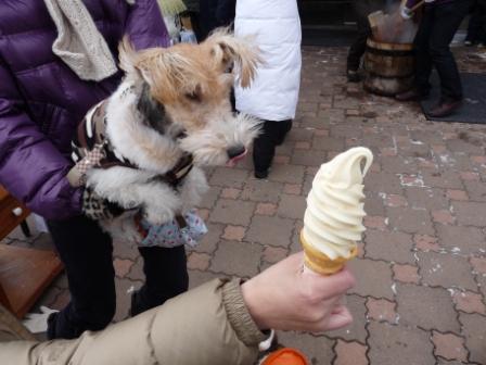 清泉寮でソフトクリームを食べるファイブパパ・・・・。