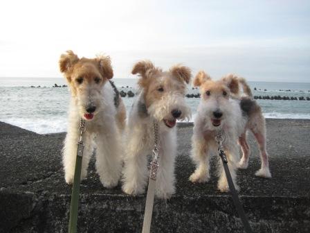 3人でテクテクお散歩。今日は海岸までお散歩しました。