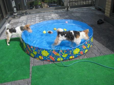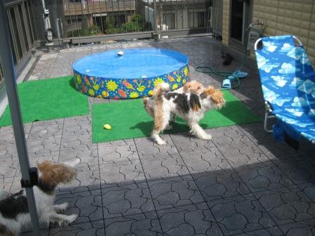 屋上で準備を始めた頃から そわそわし出した2わん。