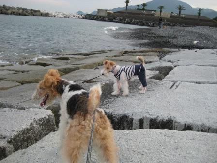 水遊びが好きなファイブですが 波が怖くて 海に入れませんでした・・・(-_-)