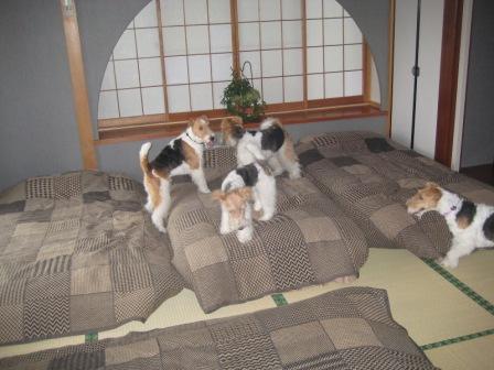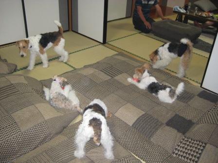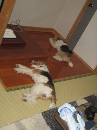 2わんは これ幸いって感じだけど 疲れないから家の中で大暴れ・・・。