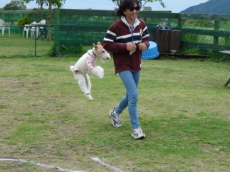 この競技 飼い主さんが 我が子に触れてゴールなので