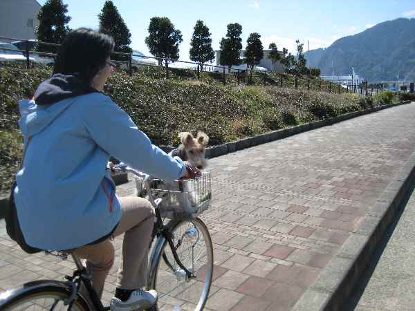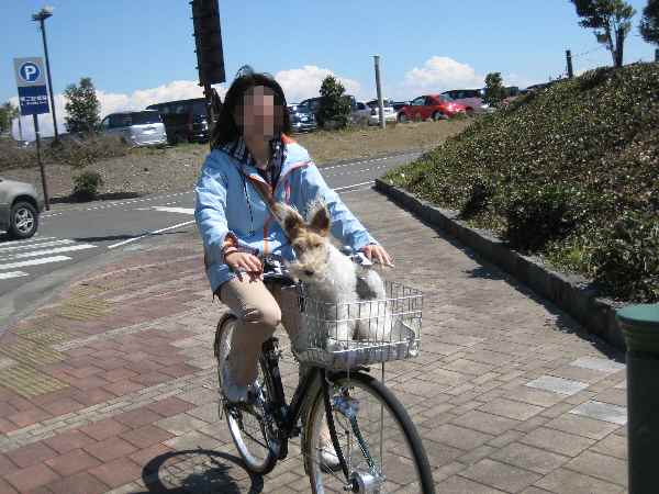 ママちゃりのかごに ファイブを乗せて 私と。