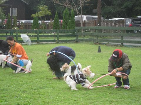 ゴールで 我が子を呼んでる 飼い主さんの おやつや おもちゃに釘付けです。