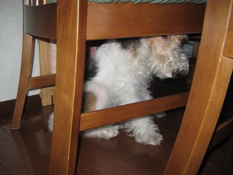 最初に避難するのは やっぱり テーブル 椅子の下です。