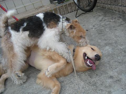 ゴン太くんを追いかけ回してる ブルース君とルーク君