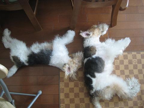 反対に・・・・全く平気なファイブ。大きな音に 目が覚めるものの