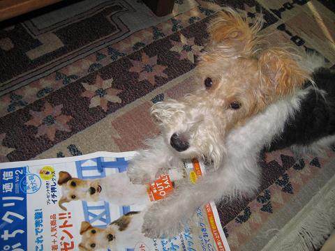 病院でもらってきた フリーペーパー抱えて寝ています。