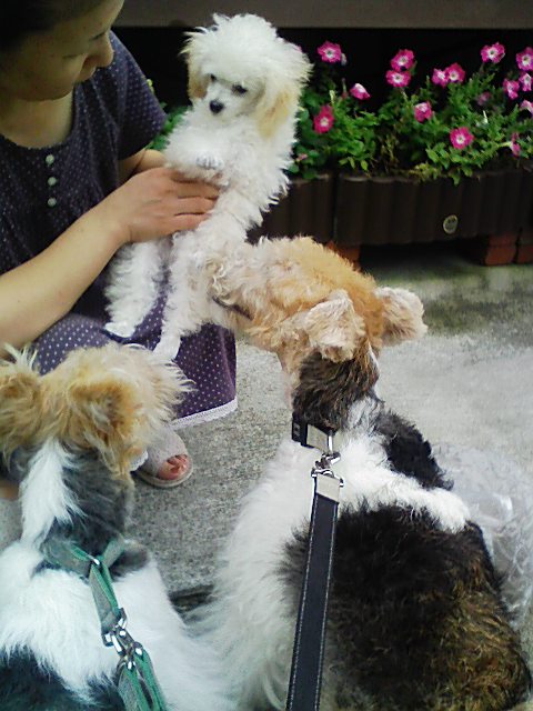 2わん 大喜びで 駆け寄って 「ガウ !」と一喝怒られました。
