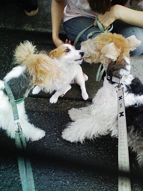 ファイブとラテちゃんが遊んでると こまめはわんわん吠えて