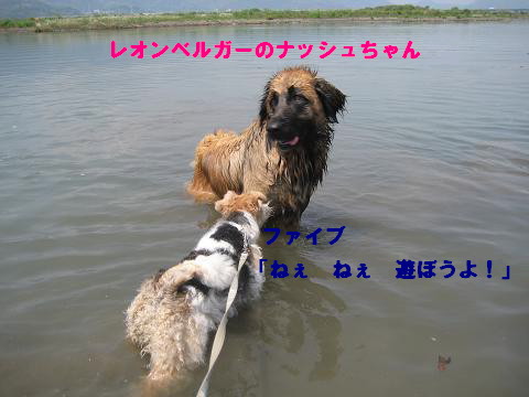 レオンベルガーのナッシュちゃんはず~~~~~っと川で遊んでいました。