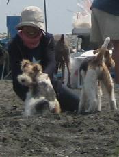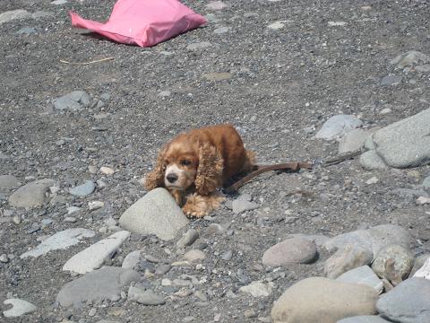 人間とわんこは 砂地を富士川河口にテクテク歩いていきます。