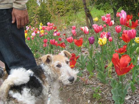 って チューリップ食べようとして 花びら落としてしまいました。