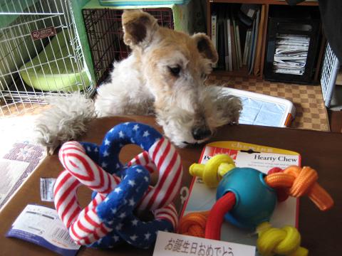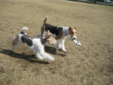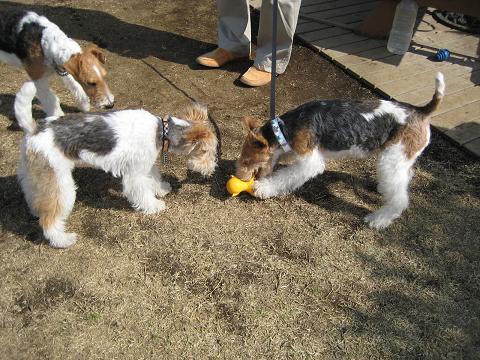 ドッチとおもちゃの取り合いして