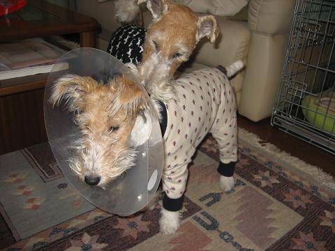 夜中もちょっと痛むのかクンクン鳴いていました。