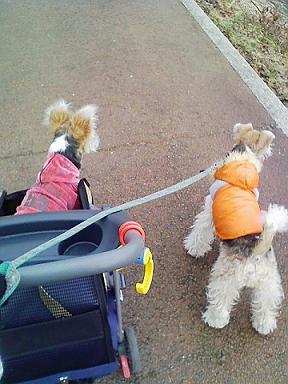 仕方がないので こまめはカートで一緒にお散歩に出掛けました。