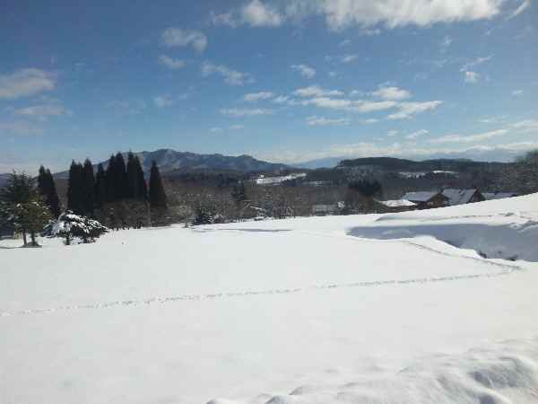 コテージ近くの雪原で わんずと 遊びましたよ。