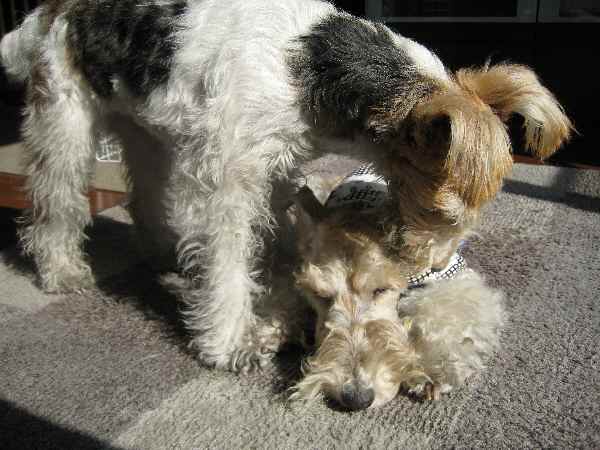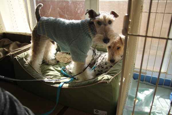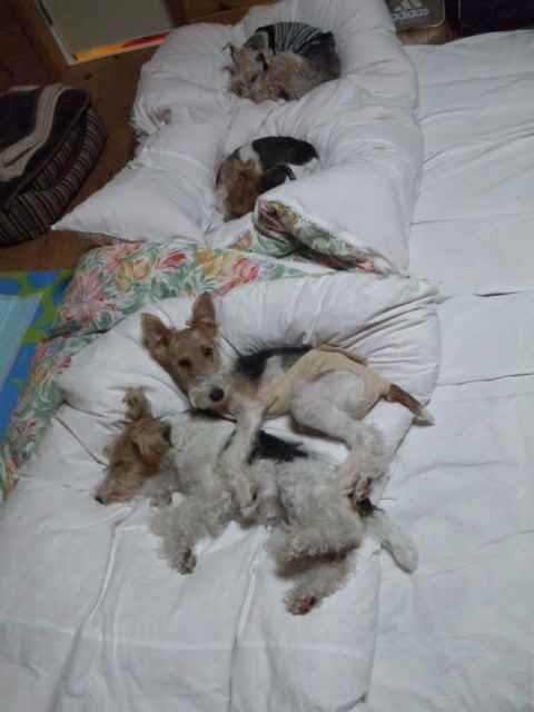 で やっぱりお疲れのわんず 各々寝場所を探し 爆睡。