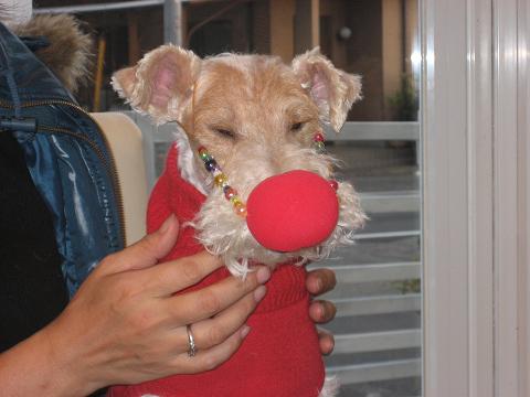 ティちゃんもかぶり物で 赤鼻のトナカイね。