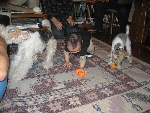 ガキ大将ファイブを追いかけるので こまめは皆さんが抱っこ。
