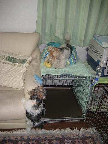 蘭ちゃんが逃げるので 強気になって わんわん吠えていました。