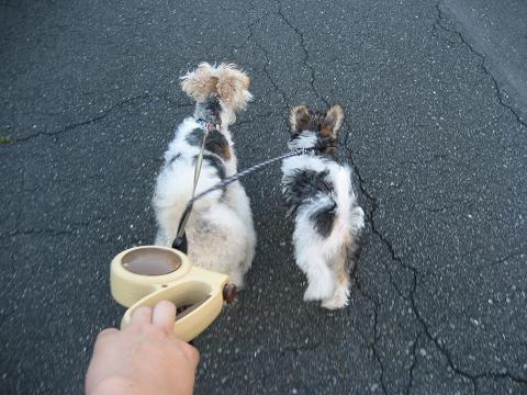 仕方がないので でっかいのを抱っこして チビが歩いて散歩。