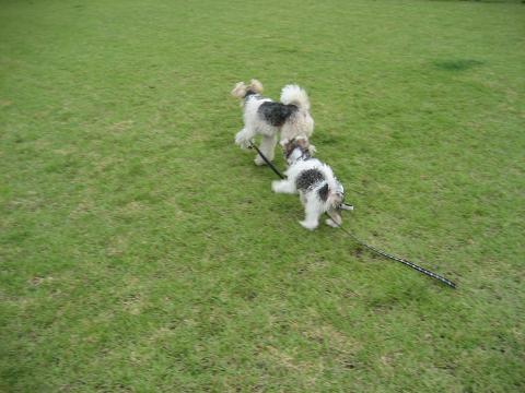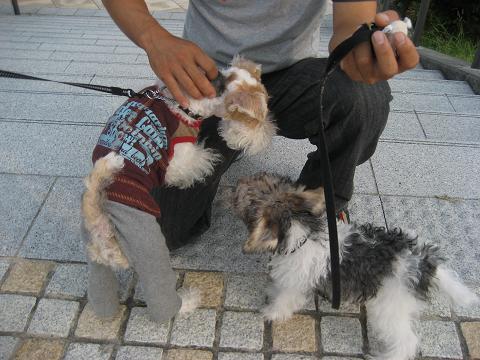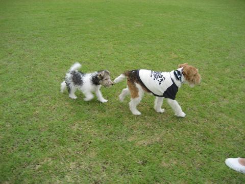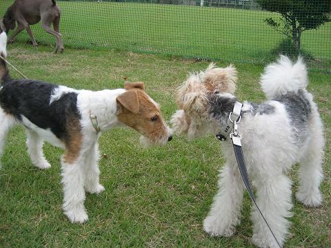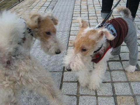 ファイブ以外のわんこと初めて接触。そ~っと近付いて行きました。