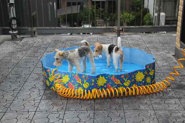 でもシャンプー したかったから どんより空だけど プール遊びを 一瞬して。