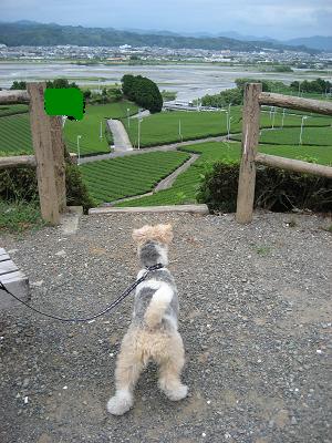 茶畑と大井川を 眺めるファイブ。