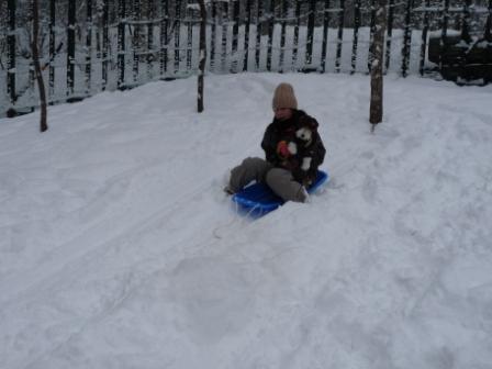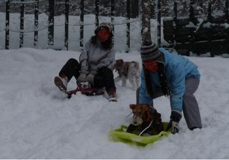 ここのドックラン 山の斜面にあるので そり遊びができました!