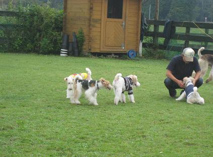 ゴールで 我が子を呼んでる 飼い主さんの おやつや おもちゃに釘付けです。