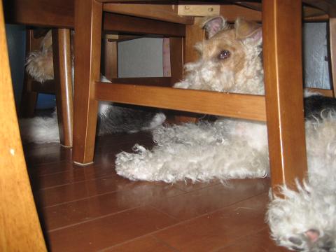 最初に避難するのは やっぱり テーブル 椅子の下です。