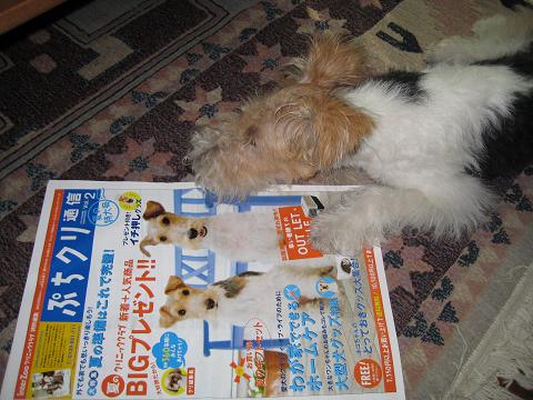 病院でもらってきた フリーペーパー抱えて寝ています。